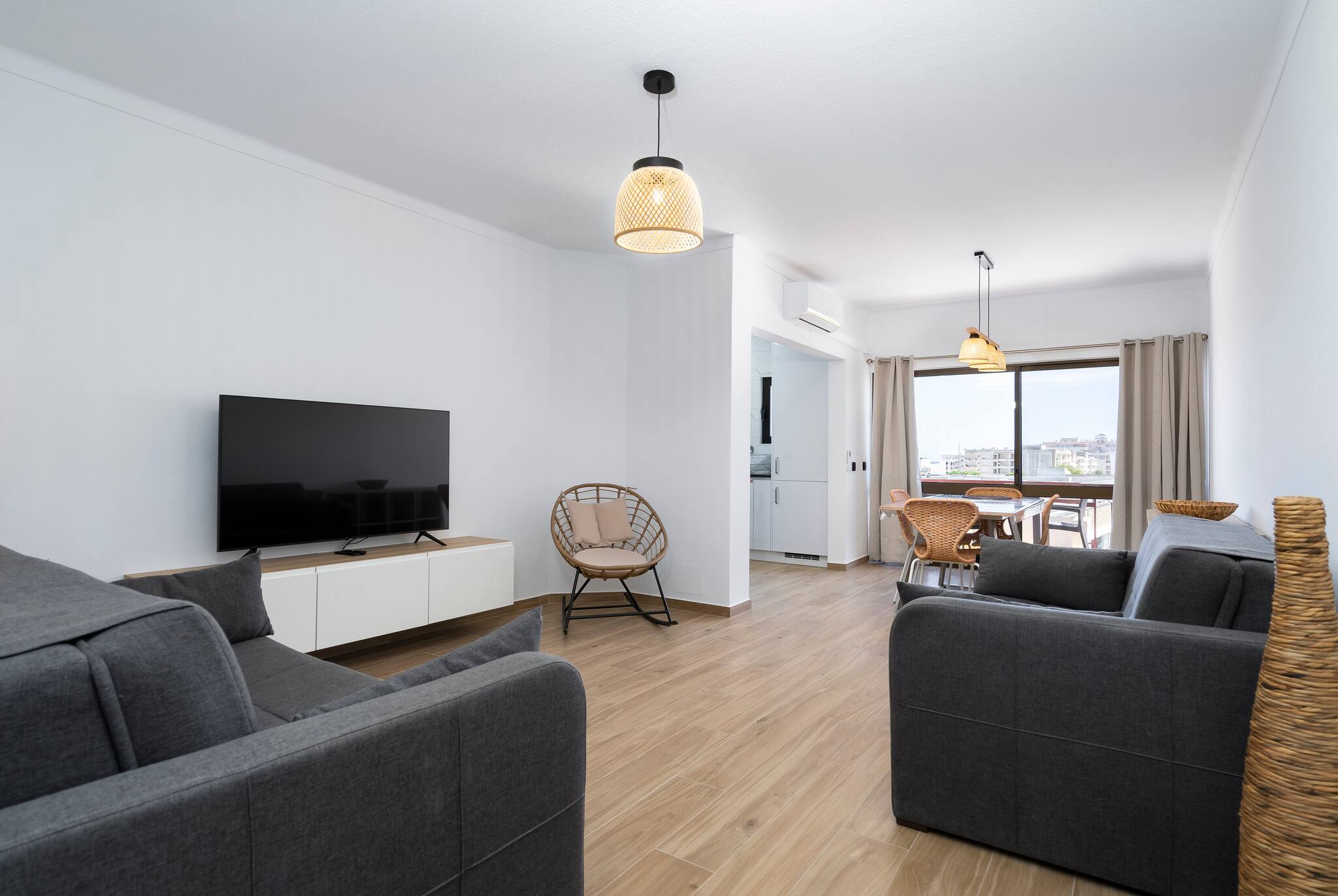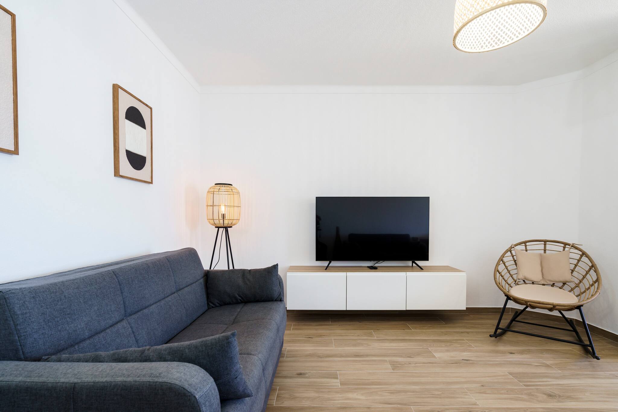 A cozinha moderna está muito bem equipada. A sala é espaçosa e muito agradável. Este apartamento está localizado a 15 minutos a pé da praia e a 2 minutos de um supermercado. A/C na sala, wifi, estacionamento gratuito.