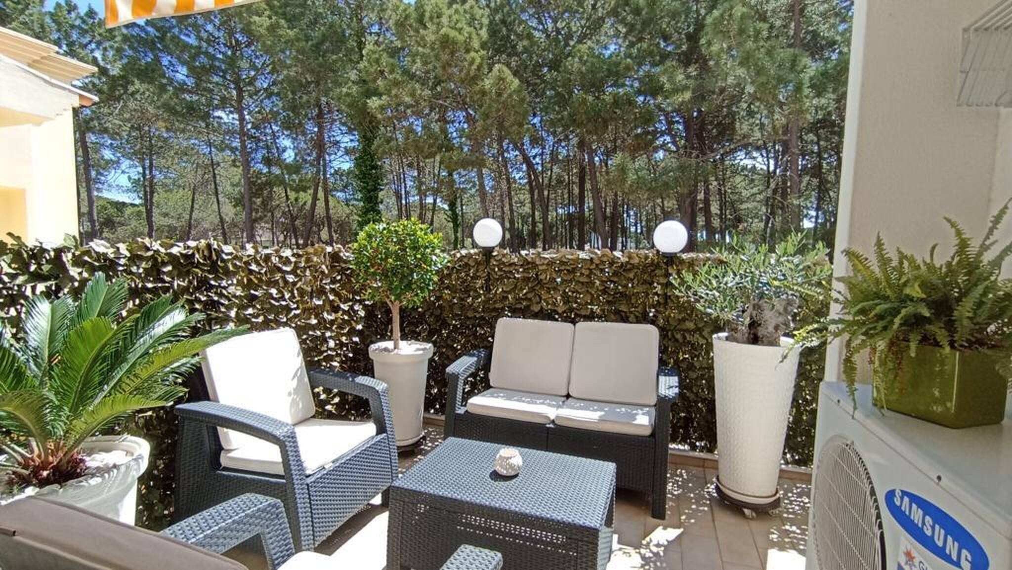 Muito bom apartamento tipo 2 idealmente localizado em Vilamoura, uma das três cidades do triângulo dourado do Algarve. Próximo do centro da cidade, da Marina e das comodidades, está situado numa zona tranquila e verde entre os pinheiros. Inserido no seu parque, encontra-se uma soberba piscina. Entre dois campos de golfe, a 700 metros do Hotel Hilton e a 900 metros do Old Course, o apartamento está também a 1500 metros da magnífica praia da Falésia e a 5 minutos do parque aquático de Quarteira, um dos maiores da Europa. A 500 metros, encontrará também o clube de ténis e padel de Vilamoura.