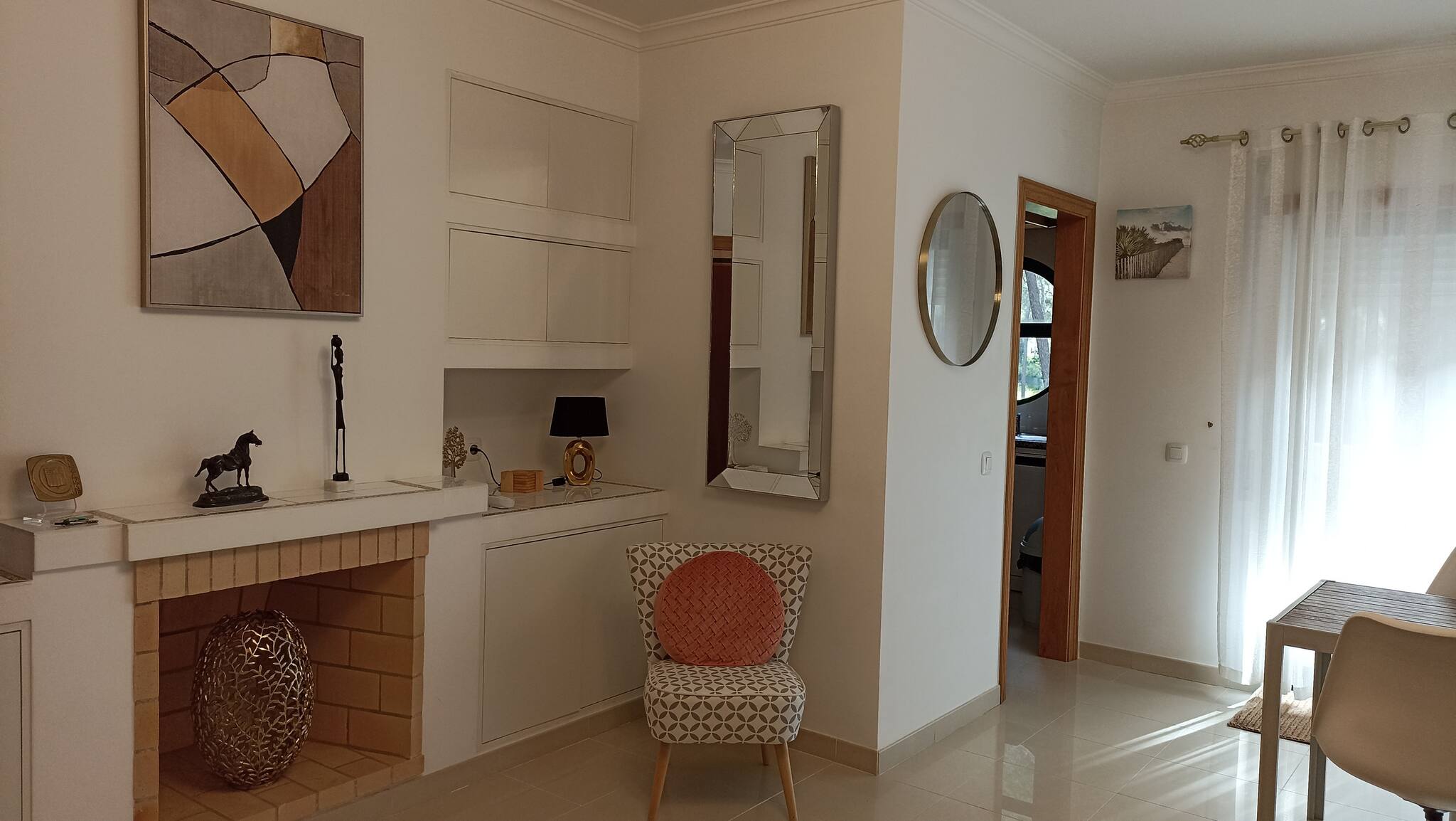 O apartamento é composto por uma entrada, uma sala de estar com lareira e uma bela varanda para almoçar com churrasqueira, uma cozinha completa e bonita. Terá também um quarto com casa de banho privativa e uma grande varanda com uma pequena sala de estar. Uma segunda casa de banho completa com sanita e duche está disponível para visitantes ou convidados que podem dormir num grande sofá-cama na sala de estar. O alojamento está naturalmente ar condicionado.