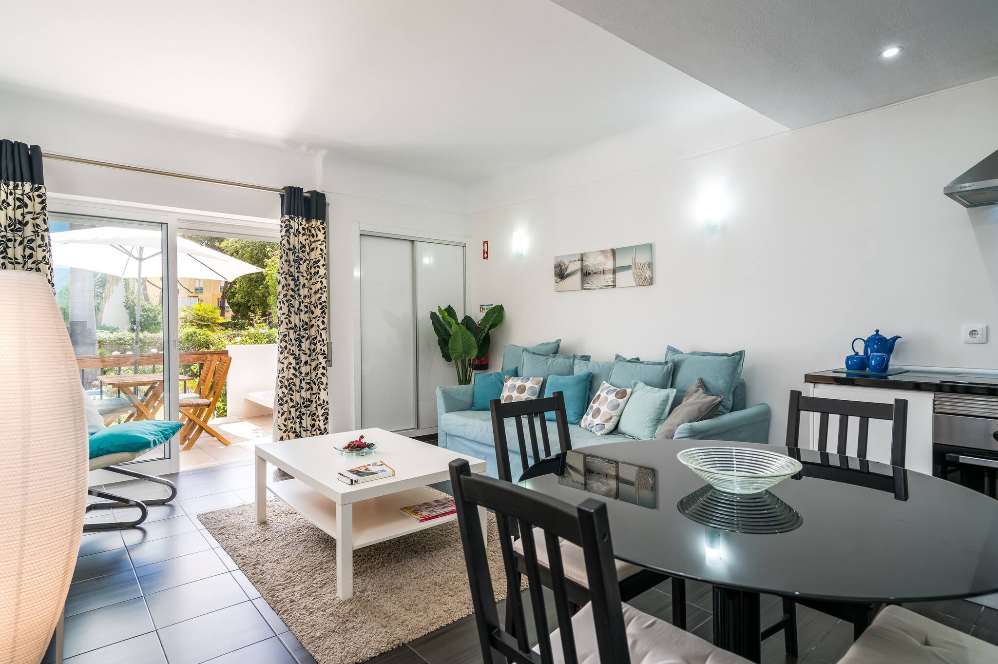 Este belo apartamento está no complexo Lago Azul, a 3 km do centro de Vilamoura, das praias da Falésia, da Marina e dos campos de golfe da área. O condomínio tem restaurante, supermercado, cabeleireiro, café e estacionamento gratuito. O apartamento SERENITY é composto por uma sala de estar espaçosa e luminosa com varanda. A kitchenette é moderna e totalmente equipada. O quarto é espaçoso, e a casa de banho está equipada para pessoas com mobilidade reduzida. O apartamento está equipado com ar condicionado, TV e WIFI (router).