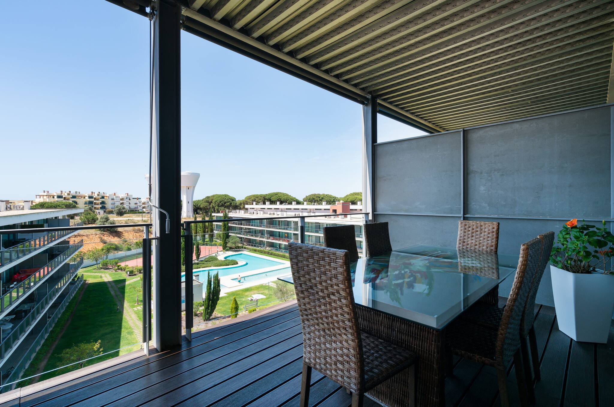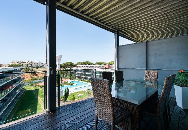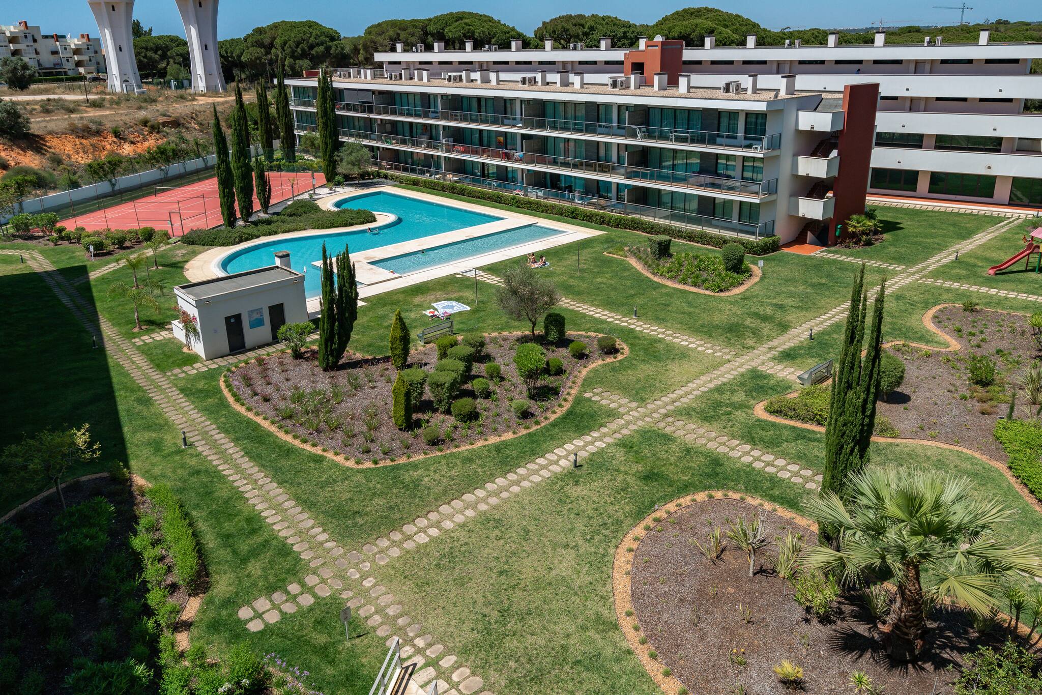 Localizado num condomínio privado, o RESIDENCE GOLF CLUB é um apartamento que pode acomodar 4 pessoas. Tem uma vista excelente para os jardins e piscinas do empreendimento. A sua localização é ótima, pois está muito próximo dos campos de golfe e a 15 minutos do centro de Vilamoura.