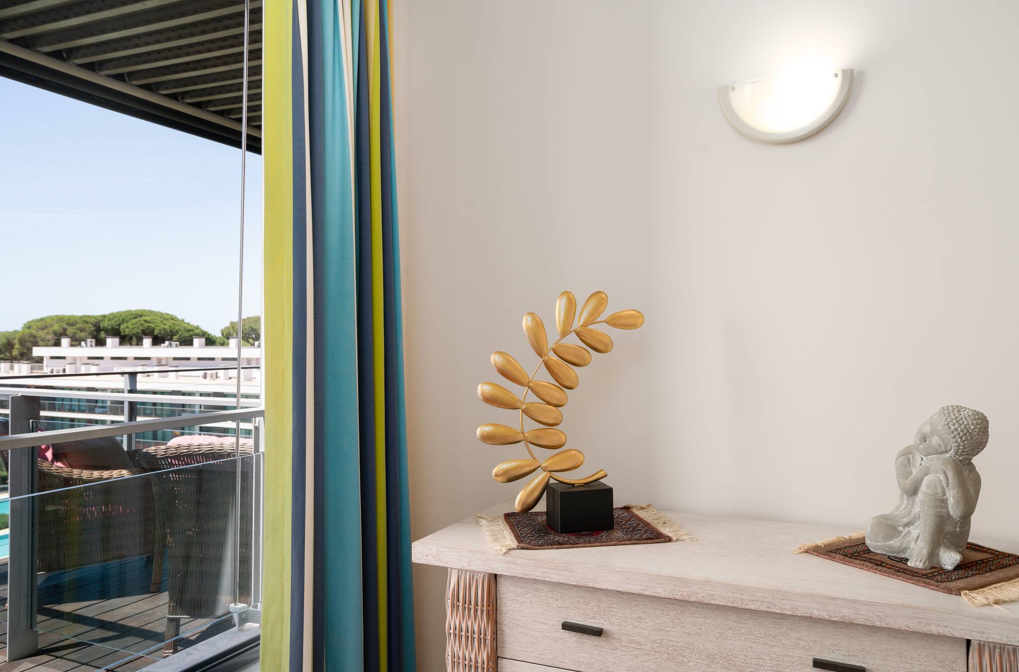 Este belo apartamento está no complexo Lago Azul, a 3 km do centro de Vilamoura, das praias da Falésia, da Marina e dos campos de golfe da área. O condomínio tem restaurante, supermercado, cabeleireiro, café e estacionamento gratuito. O apartamento SERENITY é composto por uma sala de estar espaçosa e luminosa com varanda. A kitchenette é moderna e totalmente equipada. O quarto é espaçoso, e a casa de banho está equipada para pessoas com mobilidade reduzida. O apartamento está equipado com ar condicionado, TV e WIFI (router).