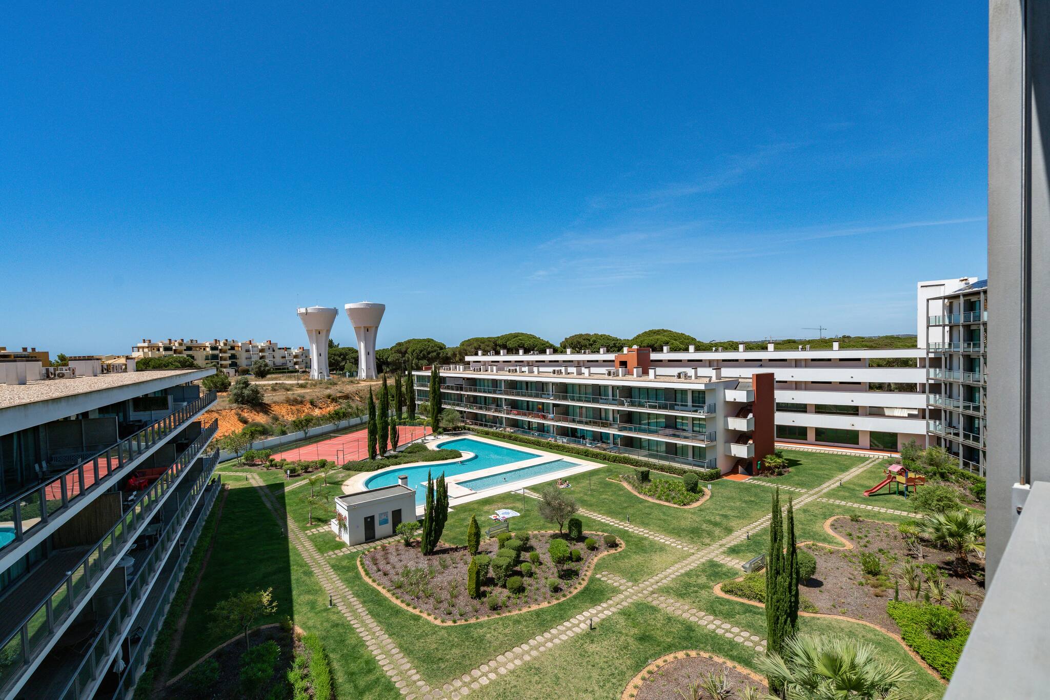 Inserido num condomínio com excelentes áreas verdes, o nosso apartamento está localizado a apenas 15 minutos da marina de Vilamoura e a uma curta distância a pé de um campo de golfe. Do 5º andar, vista fabulosa sobre as piscinas do resort e o parque infantil. O RESIDENCE GOLF CLUB tem uma cozinha americana, quarto com cama de casal, sala de estar com sofá-cama, ar condicionado, TV, WIFI e estacionamento privativo. Excelente opção para um casal com filhos.
