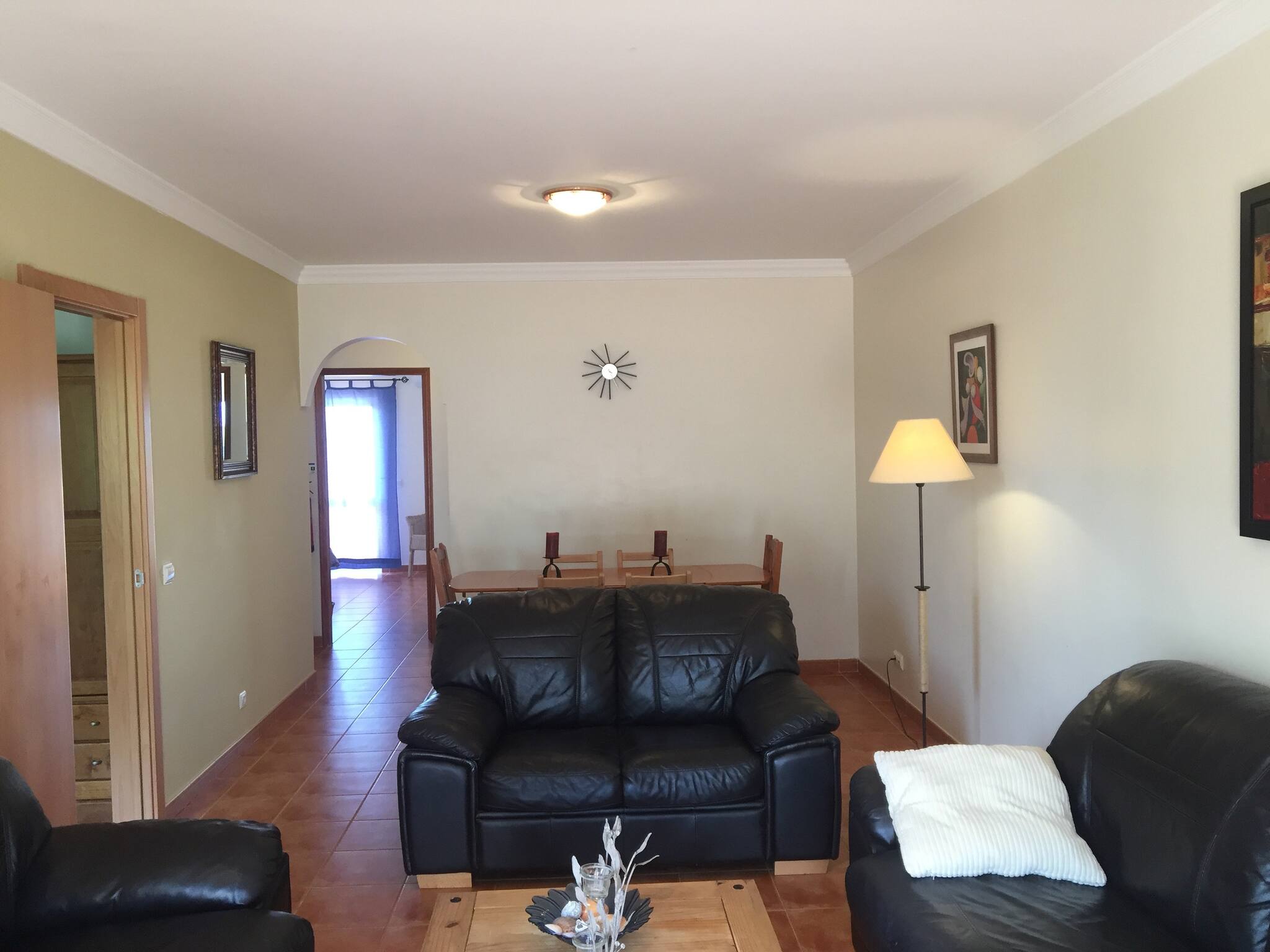 O EDDIE APARTMENT está localizado na pequena aldeia de Porches e próximo das famosas praias de Armação de Pêra e Senhora da Rocha. O condomínio é pequeno (36 apartamentos), acolhedor e situado numa rua sem saída, tornando-o ideal para famílias com crianças. Nesta área, o silêncio é garantido. O condomínio possui uma bela piscina e áreas verdes onde pode relaxar. O EDDIE APARTMENT está no primeiro andar com fácil acesso. É muito espaçoso, confortável e está equipado com ar condicionado na sala e no quarto principal, que está mobilado com uma cama de casal grande, roupeiro e uma varanda com vista para a piscina. O segundo quarto com casa de banho privativa também tem uma cama de casal e uma cama individual, podendo acomodar até 3 pessoas. Canais portugueses e franceses. Wi-Fi gratuito.