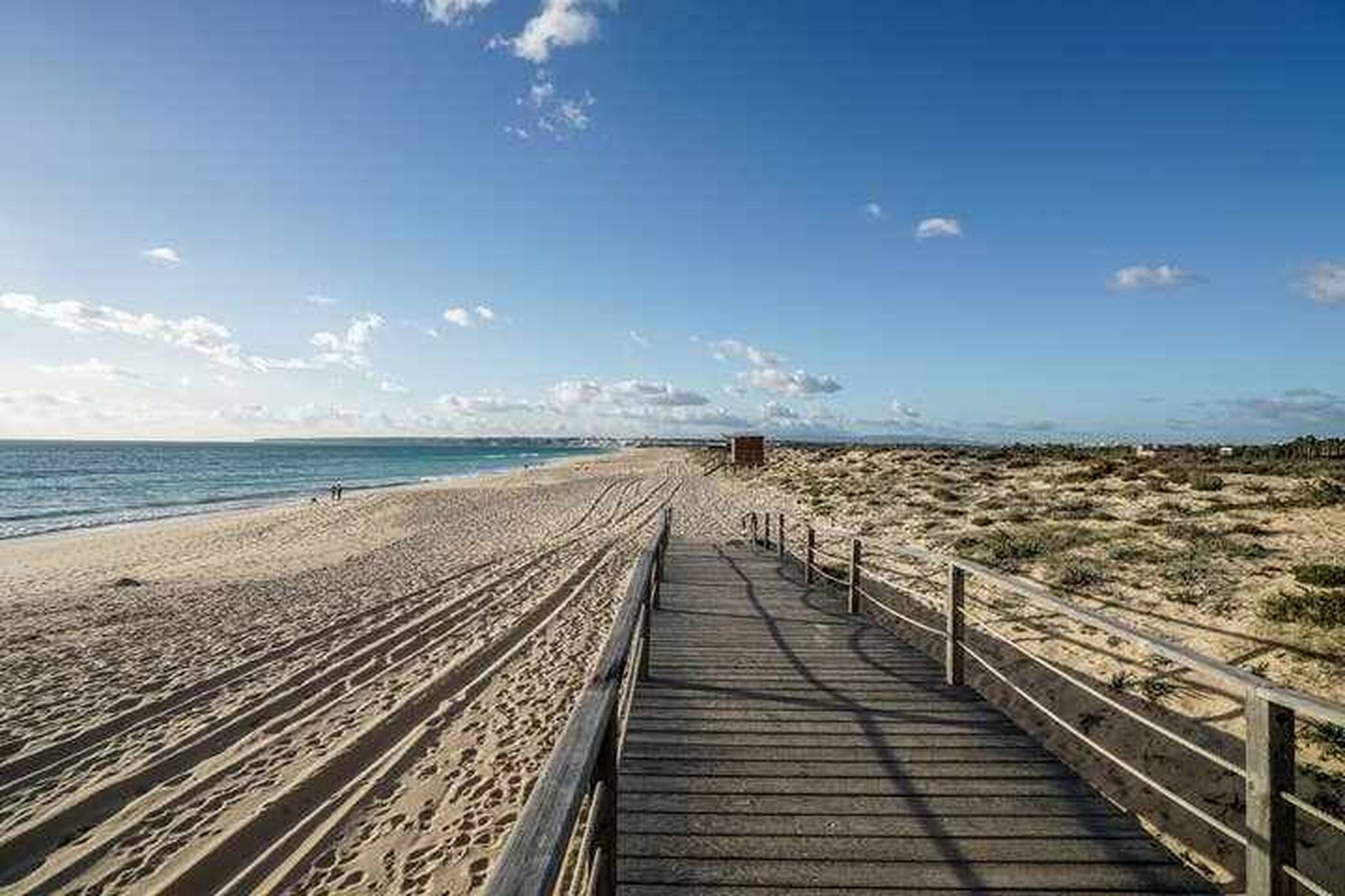 Este belo e luminoso apartamento está localizado num condomínio onde pode desfrutar de 7 grandes piscinas exteriores rodeadas por 750 palmeiras e 2500 oliveiras, bem como bares e restaurantes. O condomínio tem acesso direto ao Golfe dos Salgados, o que é muito conveniente para os amantes de golfe. O apartamento HERDADE DOS SALGADOS BEACH está localizado no segundo andar de um edifício com elevador e estacionamento na garagem. Possui uma grande varanda virada a sul. A sala é espaçosa, luminosa e a área da kitchenette é muito funcional. O apartamento está preparado para acomodar 4 pessoas. No quarto existe uma cama de casal e um sofá-cama na sala. A casa de banho tem banheira com chuveiro e secador de cabelo. Televisão por cabo e Wi-Fi disponíveis. Uma caminhada de 10 minutos é suficiente para chegar à bela praia dos Salgados.