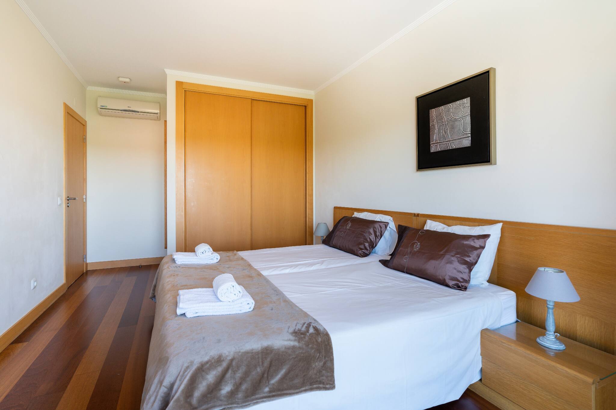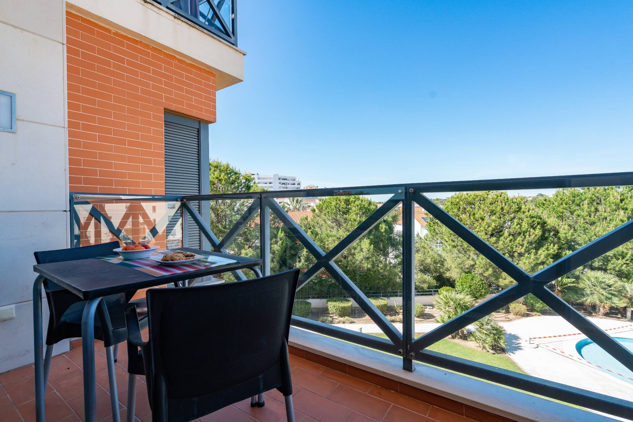 Walking distance from Praia da Oura, this cozy apartment is located in one of the quietest areas of Albufeira. With a capacity to accommodate 2 guests. This spacious apartment has 2 balconies overlooking the condo pool, a fully equipped american kitchen. 1 bedroom with 2 comfy twin beds that can be converted into a queen bed, Smart TV, WIFI and air conditioning. Due to its great location this lodging is early booked in advance. So don't miss it.
