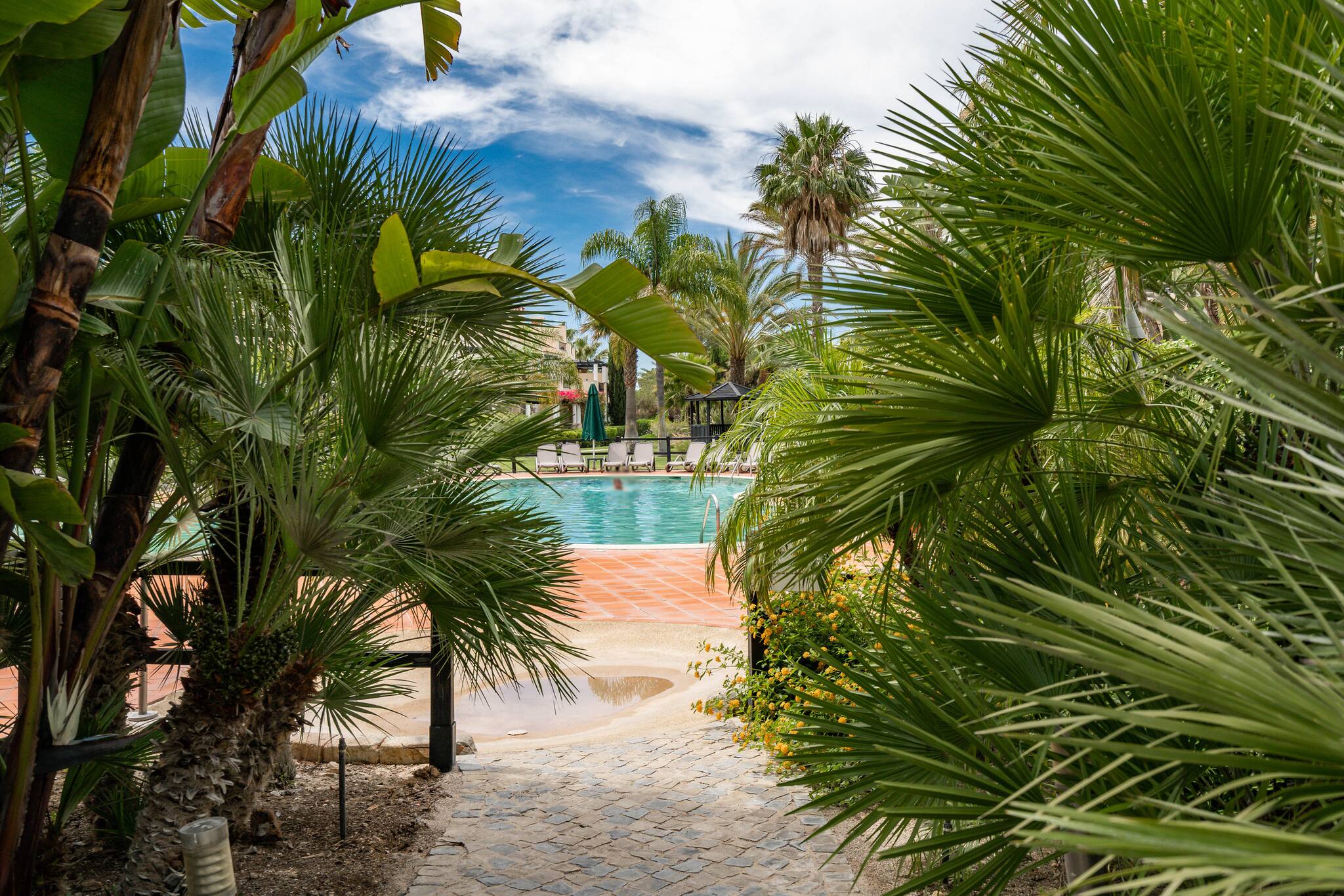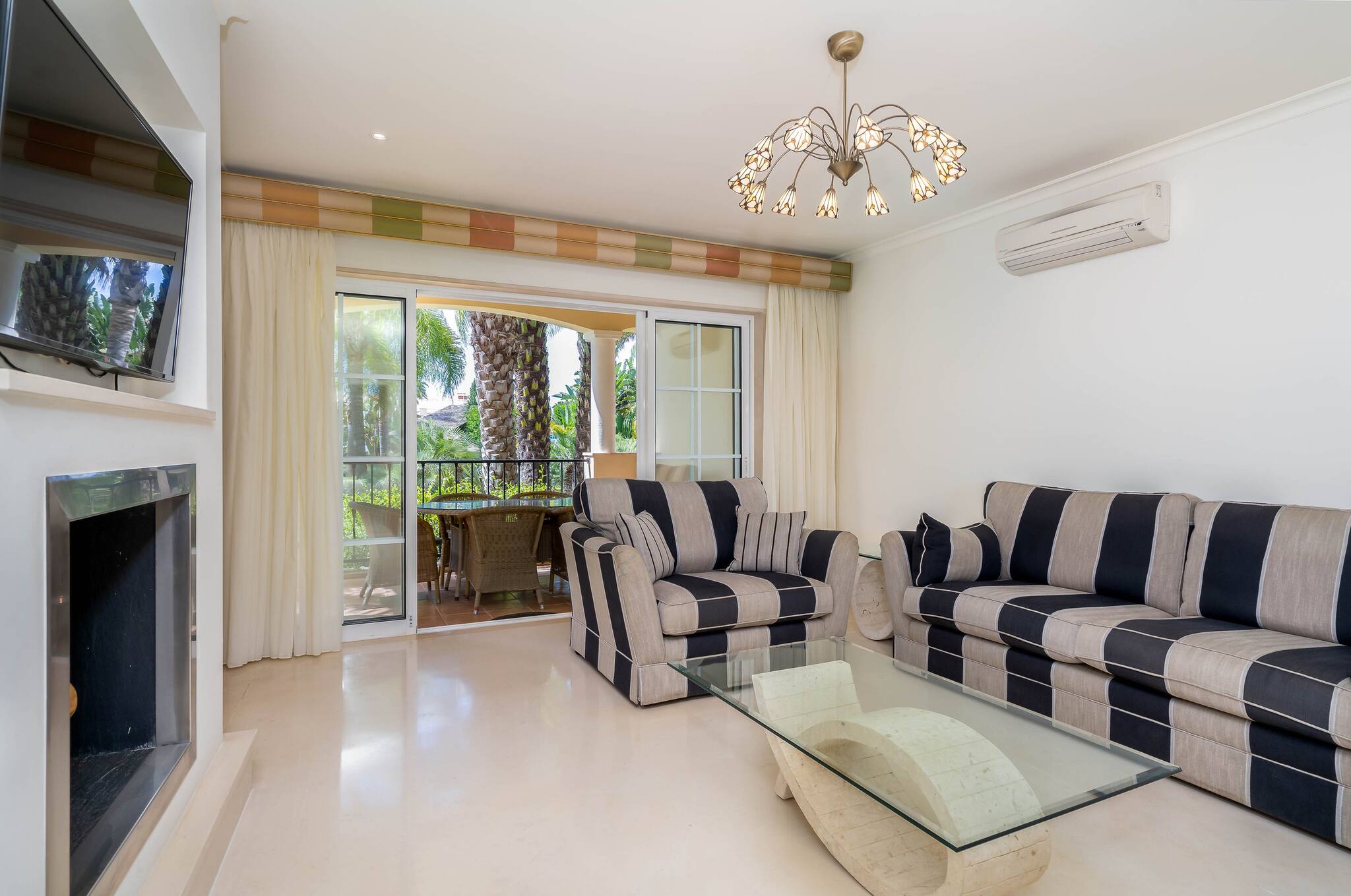 This romantic and spacious apartment is the perfect choice for families and is located in the private condominium Palmyra and in the exclusive area of Vila sol. Surrounded by palm trees, our Palmyra apartment has a spacious living and dining room with a private terrace and direct access to the swimming pool and beautiful condominium gardens.