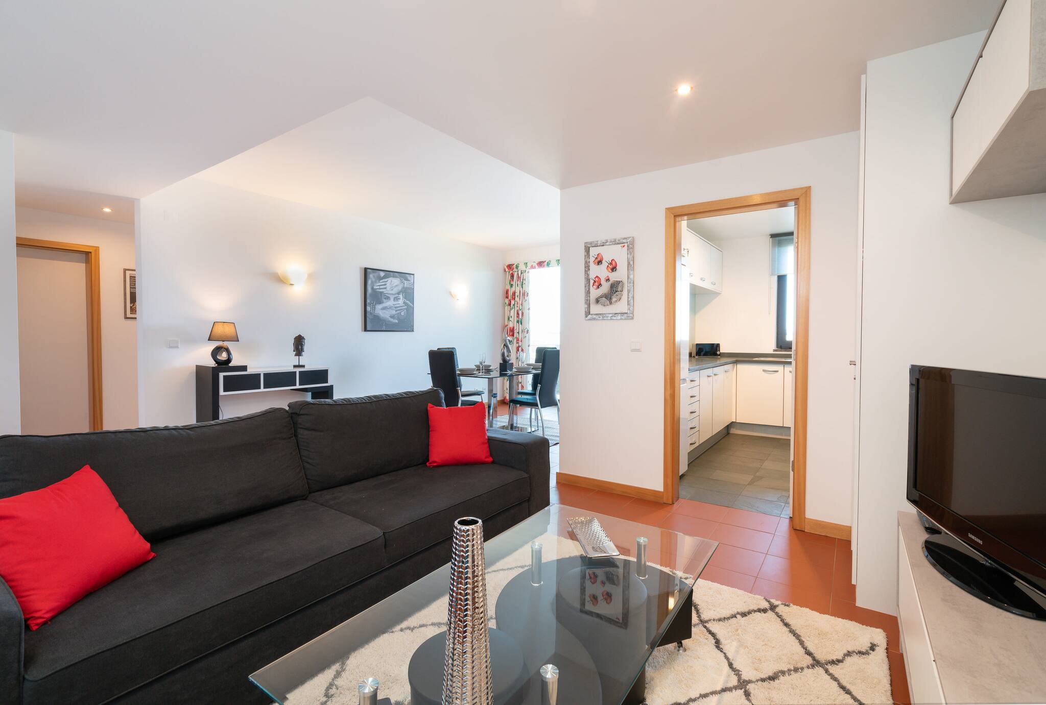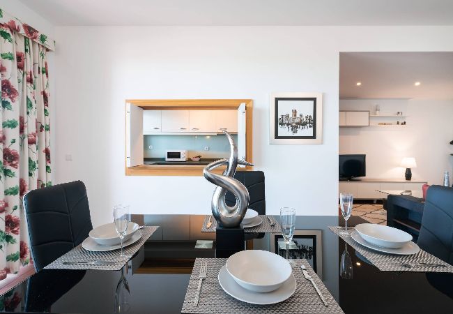 This beautiful apartment is in the Lago Azul complex, 3 km from the center of Vilamoura, Falésia beaches, the Marina, and the golf courses in the area. The condominium has a restaurant, supermarket, hairdresser, cafe, and free parking. SERENITY apartment consists of a large and bright living room with a balcony. The kitchenette is modern and fully equipped. The bedroom is spacious, and the bathroom is equipped for people with reduced mobility. The apartment is equipped with air conditioning, TV and WIFI (router).