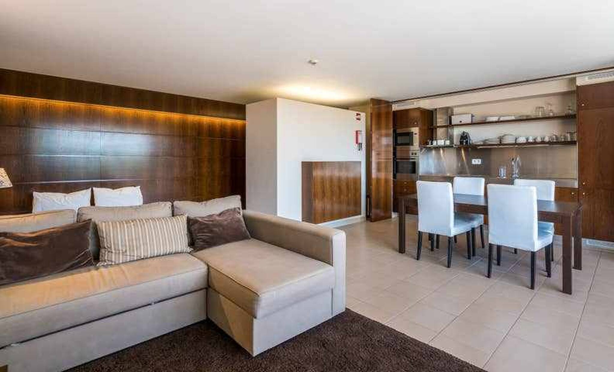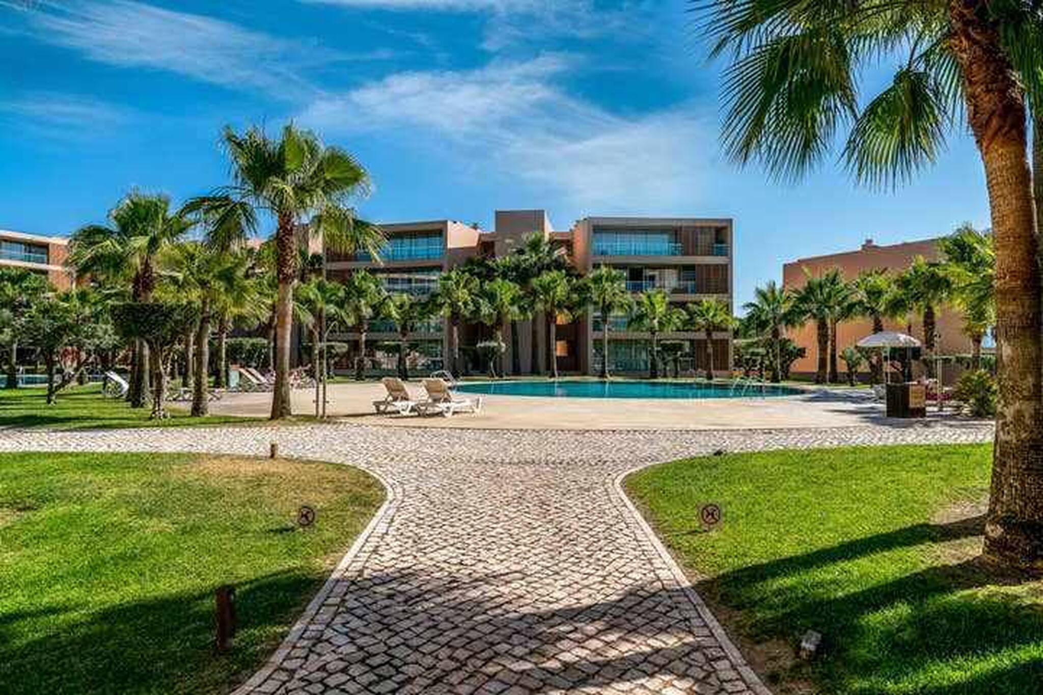 This beautiful and bright apartment is located in a condominium where you can enjoy 7 large outdoor pools surrounded by 750 palm trees and 2500 olive trees, as well as bars and restaurants. The condo has direct access to the Salgados Golf which is very convenient for golf lovers. The HERDADE DOS SALGADOS BEACH apartment is located on the second floor of a building with an elevator and parking in the garage. It has a large south-facing balcony. The living room is spacious, bright and the kitchenette area is very functional. The apartment is prepared to accommodate 4 people. In the bedroom is a double bed and a sofa bed in the living room. The bathroom has a bath with shower and a hairdryer. Cable TV and Wi-Fi available. A 10-minute walk is enough to reach the beautiful Salgados beach.