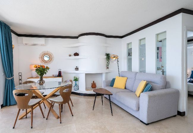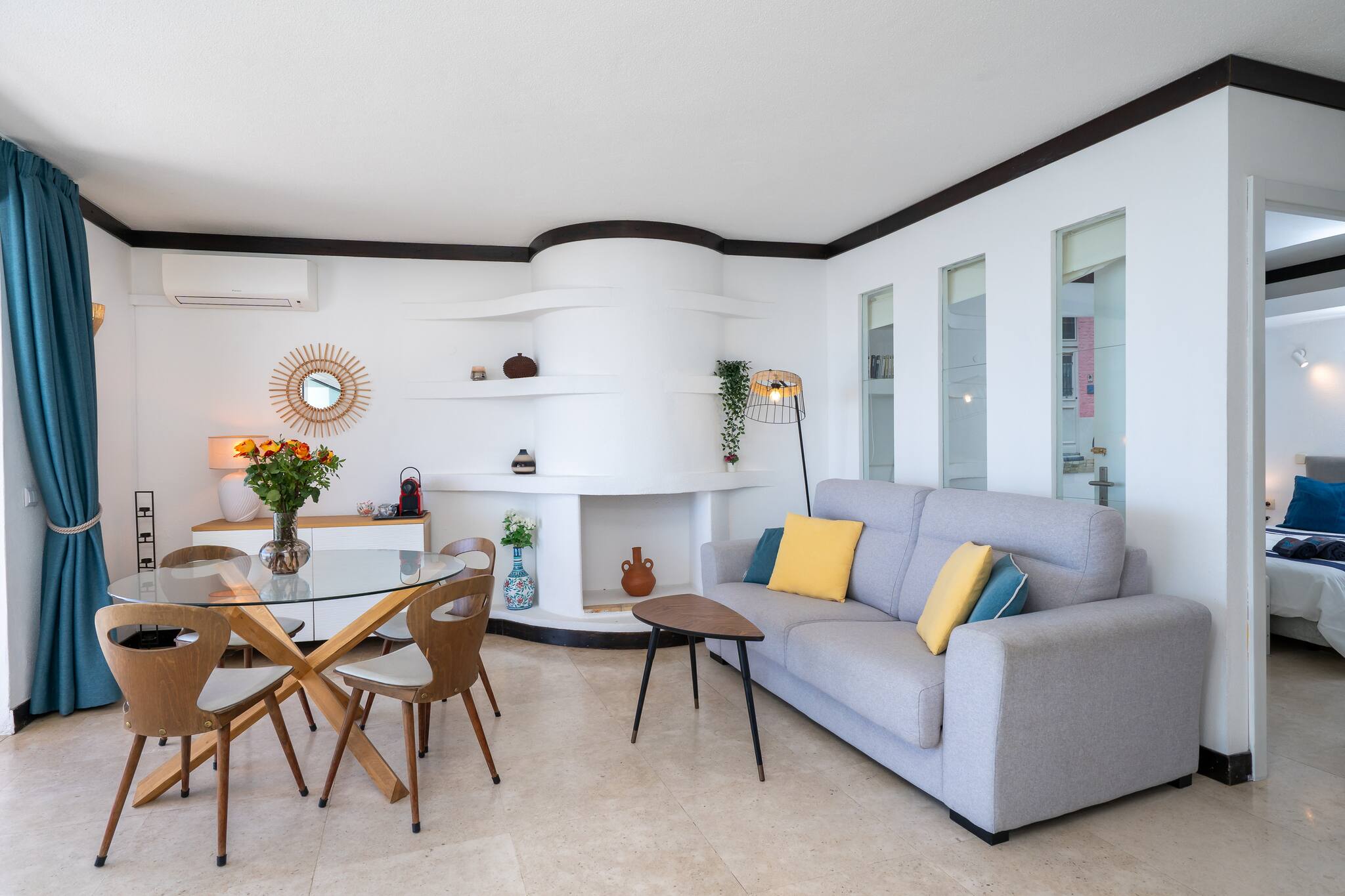 Espacio muy acogedor y cómodo. Completamente diseñado y amueblado con un toque personal. Cocina americana equipada con todos los cubiertos necesarios. Hay disponible una cama doble y dos camas individuales. TV, aire acondicionado, WIFI y 2 piscinas compartidas son algunos de los atractivos de este gran apartamento.