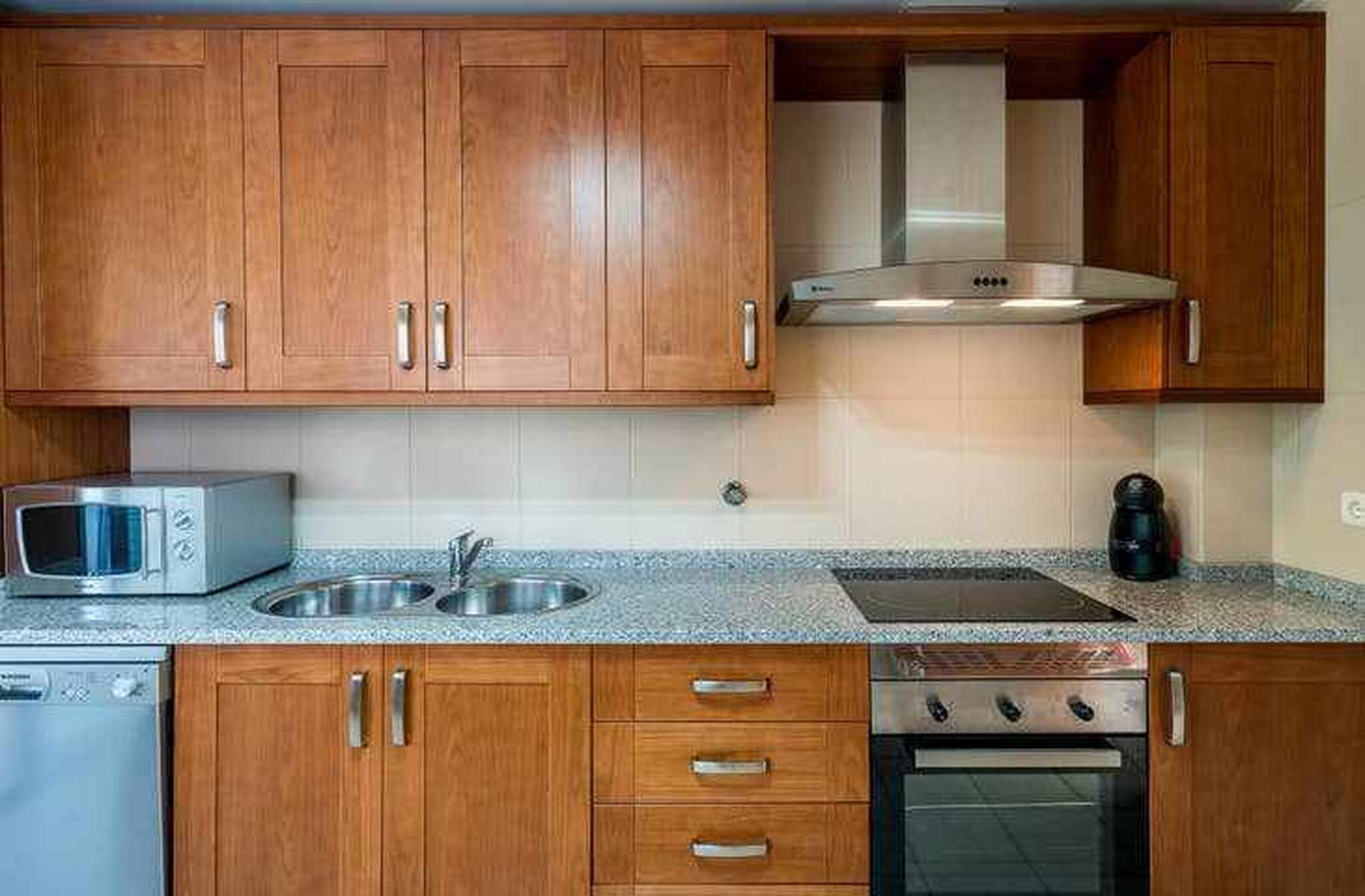 La cuisine indépendante, à vitrocéramique, est équipée avec réfrigérateur, micro-ondes, four, congélateur, lave-vaisselle, vaisselle/couverts, ustensiles/cuisine, cafetière, grille pain, bouilloire et cuisinière.